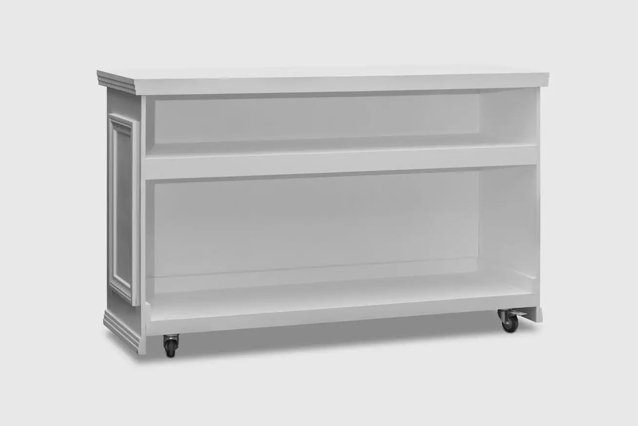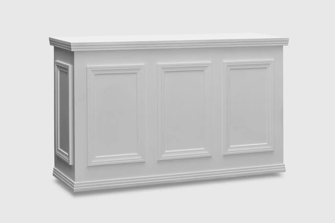 White Wooden Bar with 3-Pane Moulding Detail.