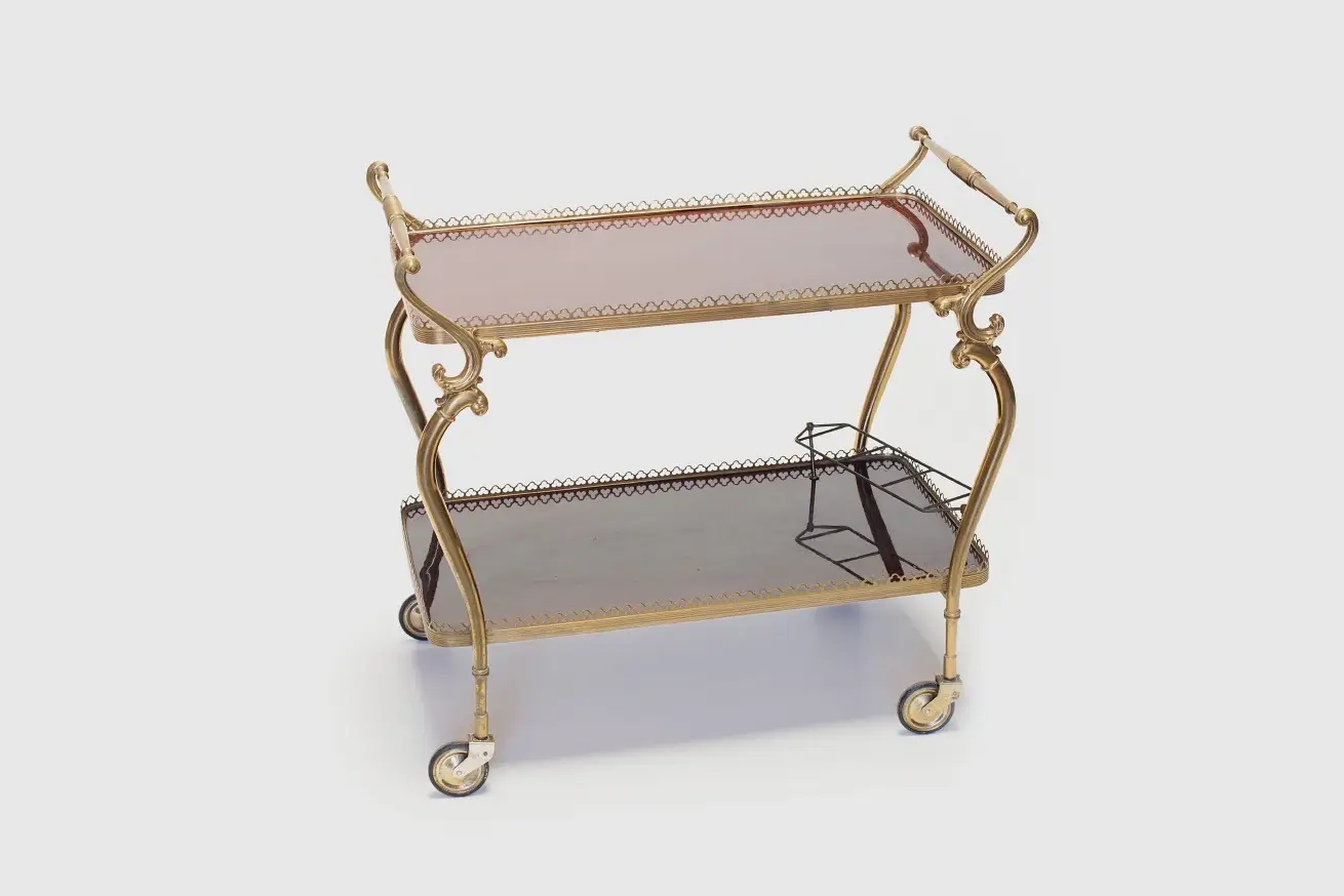 Vintage Italian Rolling Brass Bar or Tea Cart.