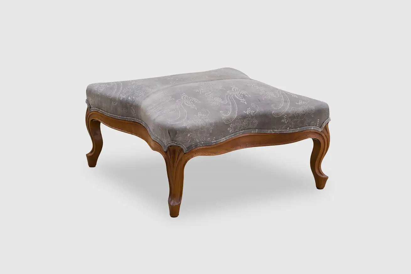 Vintage Grey Batik Ottoman with Wooden Cabriole Legs.