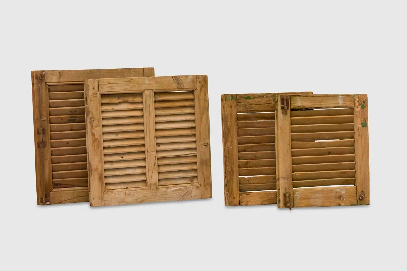 Set of 2 Vintage Wooden Shutters with Original Hardware Attached.