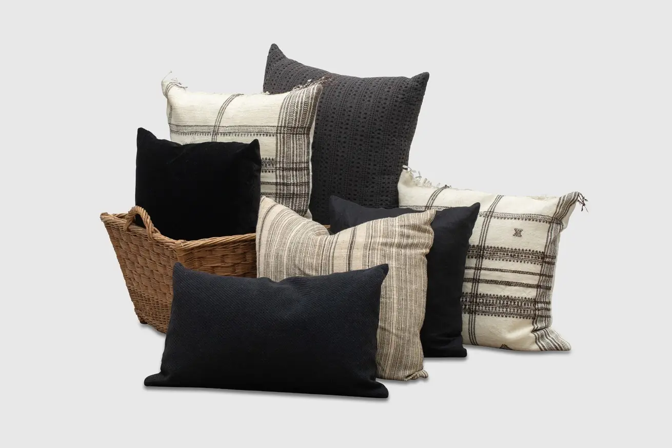 Set of 3 Black Velvet or Black Textured Pillows.