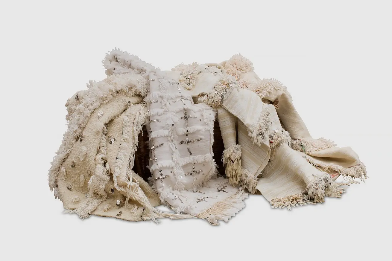 One-of-a-Kind Moroccan Wedding Blanket with Beautiful Hand-Stitching & Sequins.