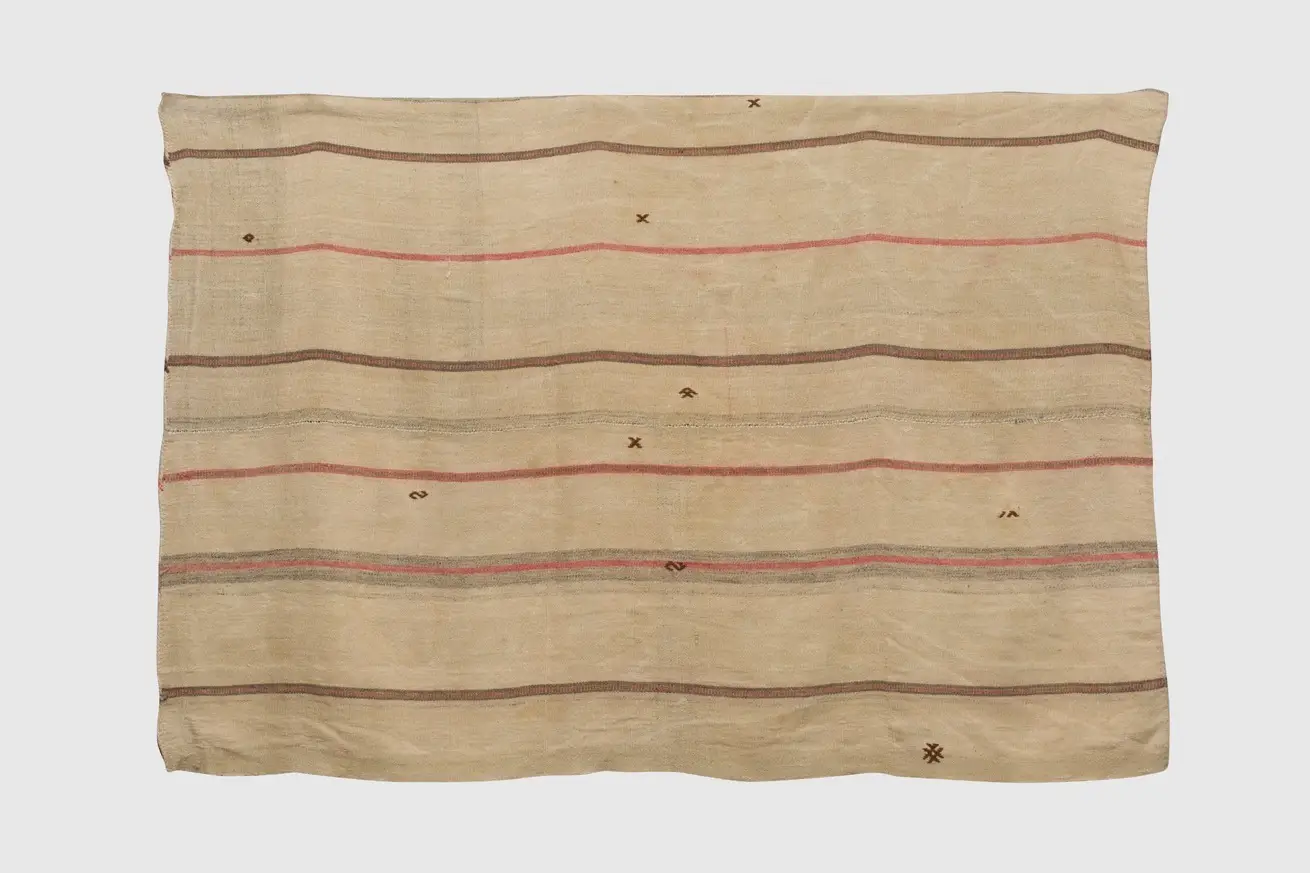 Lightweight Turkish Rug with Grey and Red Stripes.
