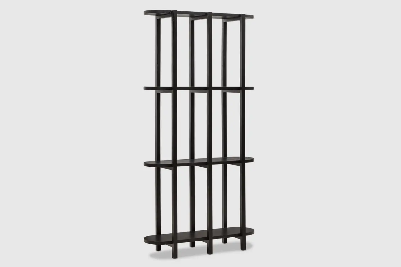 Tags: back bar shelving, black shelving, display shelf, room divider, tall shelving