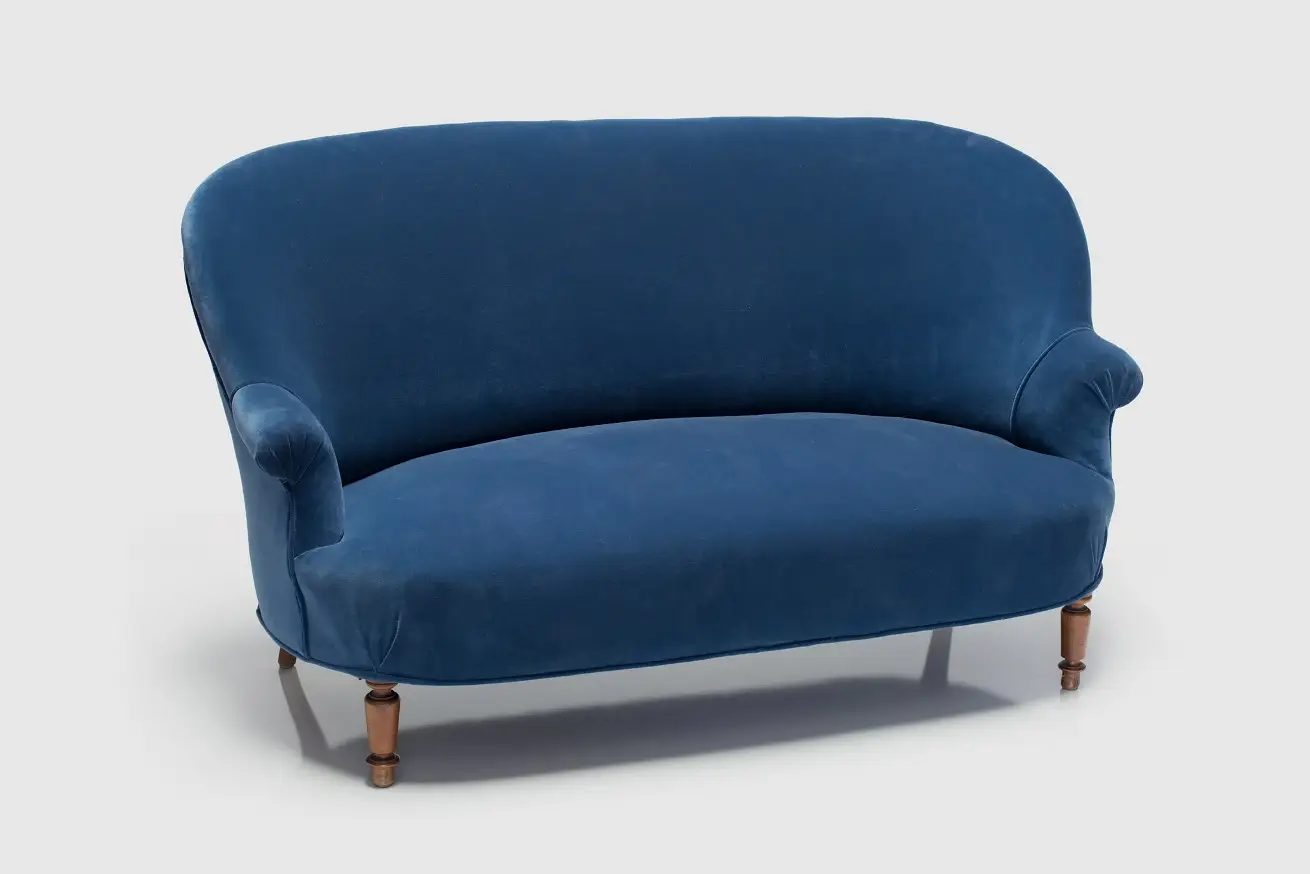 Round-back Settee with Harbor Blue Velvet.