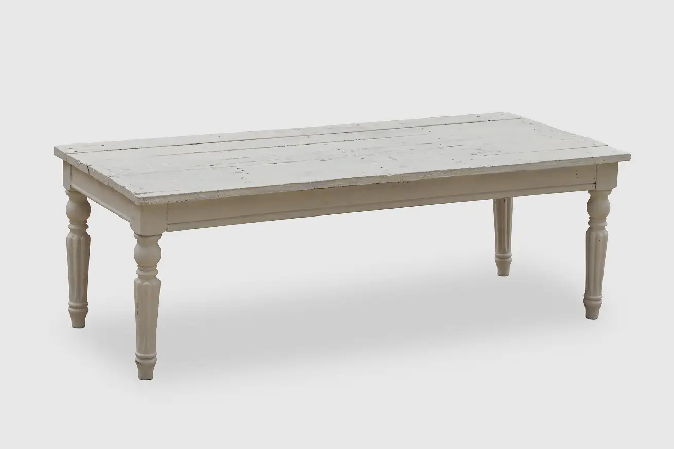 White Wooden Coffee Table with Turned Legs.