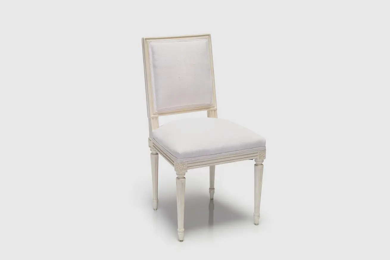 Wooden Square-Back Chair with Vintage Hemp Upholstery.