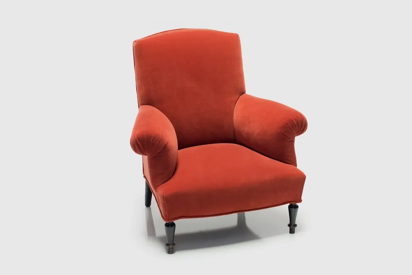 Burnt Orange Velvet, High-Back Chair with Rolled Arms.